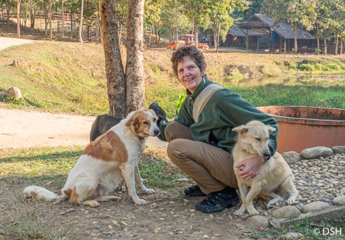 I sorted Chiang Mai photos in the van as we continued south towards Sukhothai. I wish airline seats were this comfortable. We had dinner at Boon Lotts with Katherine (Kat), a Brit who founded this elephant sanctuary along with her non-deceased Thai husband. She, with the help of her five young children, mahouts and staff, provides a home for about a dozen rescued and retired elephants and many other animals. She told us a beautiful story of an elephant who spent the last year of her 60-year life at the sanctuary, grateful for the welcoming fruit she received, and departed on the wings of a butterfly. We also heard about the python that she found in her house this year; that would send me packing.