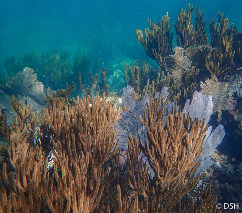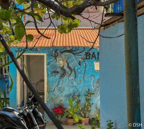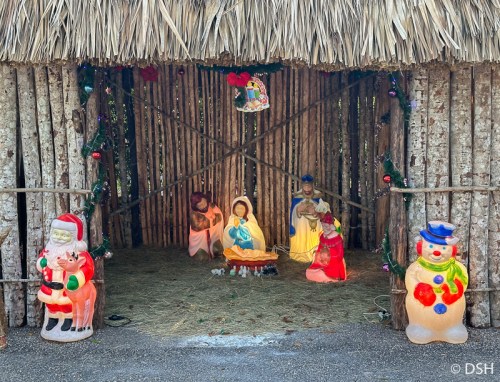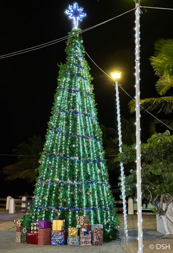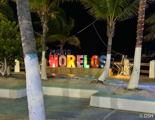 I filled a large trash bag during my post-sunrise beach walk; the wind brought more garbage ashore: mismatched shoes, toothbrushes, and other random plastic items, including lot of bottle caps. There was time for lounging, a quesadilla lunch, and short nap before Carrie drove us to Puerto Morales. I went out on a boat to snorkel for a couple hours. My camera battery died shortly after I stepped overboard, and the coral was not healthy, but I loved being in the water. Afterwards, I met Donna and Bo at My Paradise for cocktails. Carrie joined us for dinner, at an interesting seafood restaurant, and then we strolled around enjoying the Christmas lights.