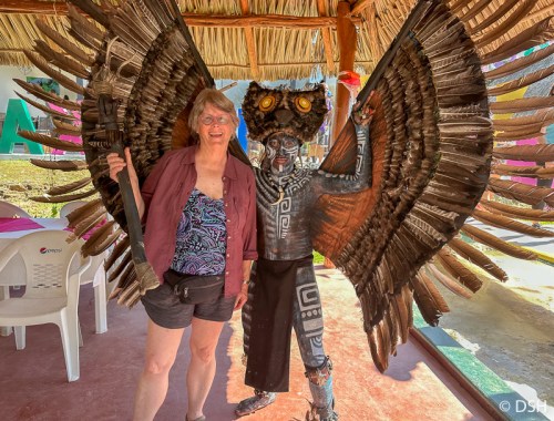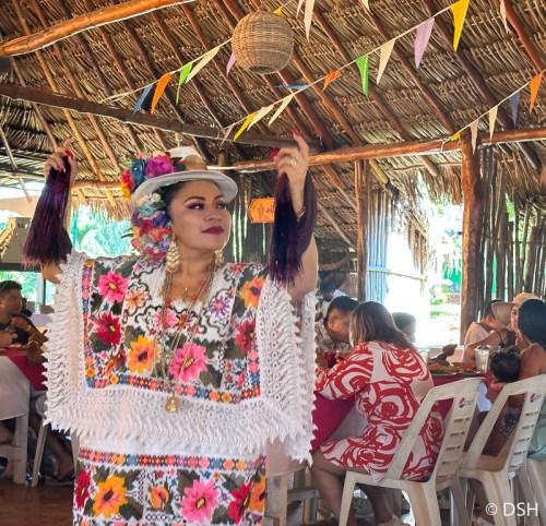 From door-to-door, my tour of Chichen Itza and other sites in the state of Yucatan took 15 hours. I wouldn’t have signed up if I knew that in advance, but I’m glad I went. Alberto, the villa’s caretaker, drove me to a nearby resort where we waited a half hour for the tour van. I was the first passenger and until an English-speaking Mayan guide, Philip Ernesto, got onboard, I wasn’t even sure I was on the right tour. I could have skipped our first stop, Cenote Suytun, a small cave with a pool of water inside. At our next stop, a touristy Mayan village, we enjoyed a buffet lunch, watched dancers, and had the “opportunity” to purchase obsidian carvings and other souvenirs. (I added a small elephant to my collection).