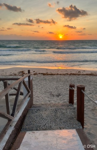 Many of us in the Northern hemisphere dream of vacationing someplace closer to the equator at this time of year, and I had that opportunity earlier this month. A couple of my friends, Carrie and Donna, invited me to join them for a week in a villa south of Cancun. Carrie’s childhood friend, Bo, flew in from Maryland to join us. It was a pleasure to spend a week in shorts and flip-flops, a welcome break from home renovations. Donna, Bo, and I watched the sunrise almost every morning. I spent hours lounging on the beach, watching waves, reading, and playing in the warm Caribbean water. I also took a tour to Mayan sites and enjoyed time in Puerto Morales, the nearest town.