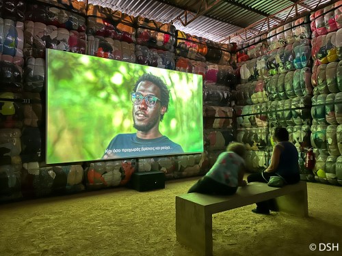 Cleo speaks quite a bit of Greek, which she learned from her Greek grandmother, and directed our taxi driver to the Niarcos Foundation Cultural Center. There were no performances today, but we enjoyed the views and saw “Return to Sender” an art installation by The Next, an African art collective, focused on increasing awareness of textile waste. Many discarded clothes are sent to Africa where they end up in landfills.