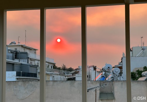 We rejoined others in the lobby and boarded a bus which took us to the port for the painting part of our workshop. It was a good time to be leaving; a couple fires started outside Athens yesterday and there was smoke in the air.