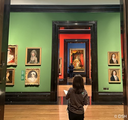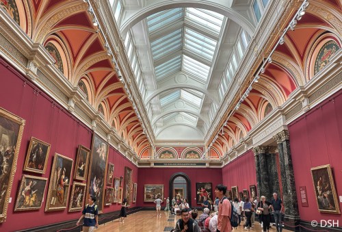 By the time we walked next door to the National Gallery, Trafalgar Square was filled with tourists and noisy performers. We ate salads for lunch downstairs in the cafe, then viewed all open galleries (1-8 were closed).