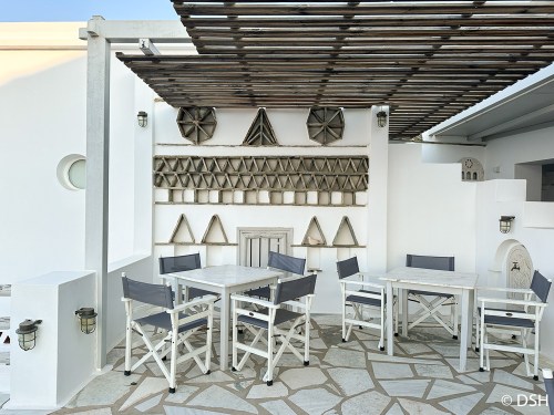 After a tasty fish lunch in Rafina, we boarded a large ferry for the two-hour ride to Tinos. I wish airline seats were as comfortable. I walked up to the deck a couple times, but it was way too windy to stay long. A bus was waiting at the Tinos port for our 15-minute drive to our lodging, Porto Raphael in Agios Ioannis.