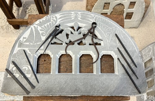 My painting suffered overnight. Apparently one of the workers, thrilled to see a painting of the chapel, picked it up and hugged it, getting paint on his shirt. It was then left on the ground and the wind brought in dirt. Fortunately, it was only the first layer, so I wiped off the dirt and continued. It was a bit cooler and windier than yesterday.