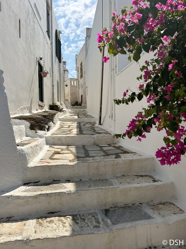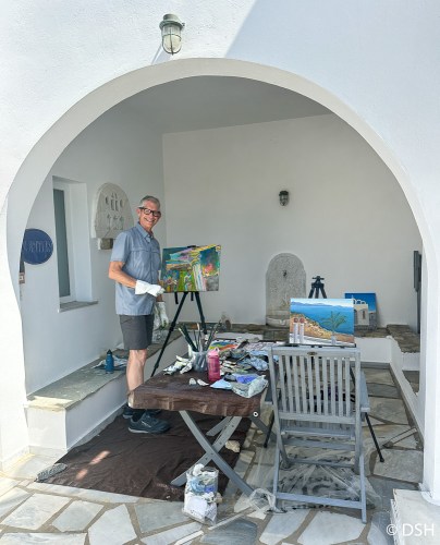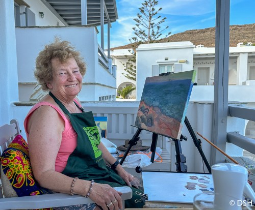 August 2023 – I spent a week with my painting workshop on Tinos, the windiest of the Cyclades Islands. While cooler than Athens, it was still hot by my standards and I spent most of the time in capris and flip flops. In addition to painting, we visited Pyrgus, a village on the opposite end of the island and I took daily walks along the shore­.