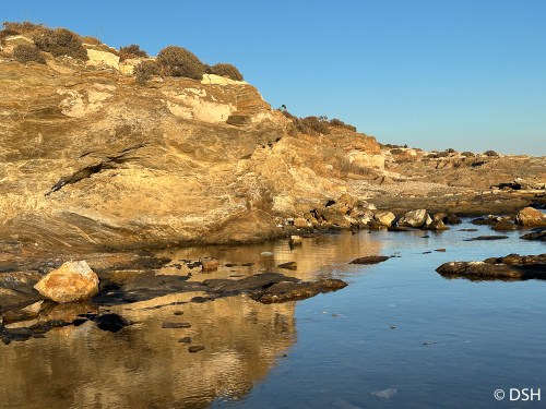 Meghana and I took our longest morning walk, going up and around the bend to the east where we could see another peninsula jutting into the sea. The light is beautiful at this time of day. There was almost no wind.