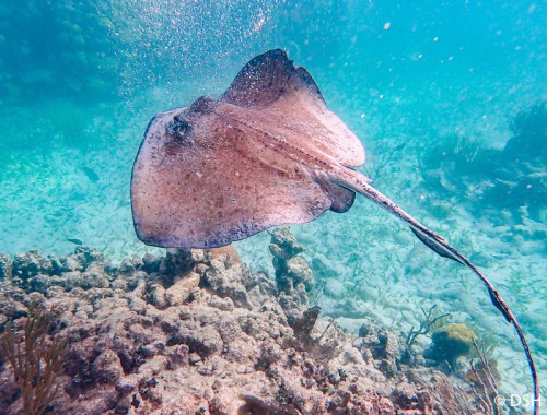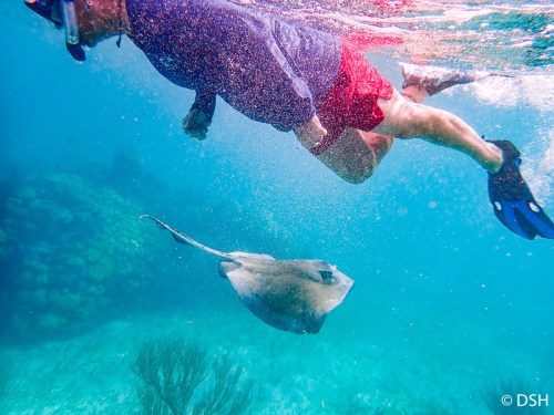 We stopped to snorkel in four locations, the last, in Hol Chan Marine Reserve, was by far the best. Unfortunately, just as I was about to take a picture of a long green morey eel, my camera flashed “Battery Exhaused”. I also missed photographing a nurse shark and small sea turtle. Our capitan dropped us off at the dock near our hotel saving us a walk back through town.