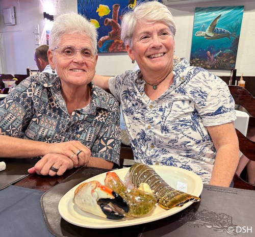 After a short break, we walked back into town for dinner at Caramba’s, where we picked out fish and had it cooked to order. My hogfish was good though hard to debone, the vegetables were perfectly cooked, and the key lime pie yummy. When I went to bed my right sinus was bothering me, a not uncommon occurrence, I assumed it had become irritated by sea water.