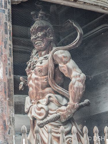 Isuien Garden was peaceful and provided a glimpse of Todaiji Temple gate, the only one we would see not covered in construction cloth. In the temple, we saw one of Japan’s largest bronze statues of Buddha. Fifteen meters tall, this seated Buddha is flanked by two Bodhisattvas and numerous small buddhas. From there is was uphill, past many sights, to the Kasuaga Taisha Shrine, filled with hundreds of lanterns (tōrō). We took a bus back down to the train station.