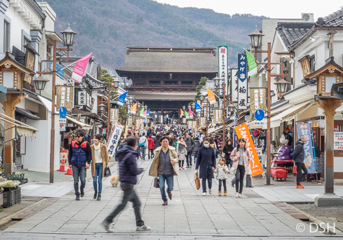 After lunch, we toured the Zenkoji temple, built in the 7th century before Buddhism in Japan split into different sects. It contains a hidden Buddha statue, believed to be the first Buddha statue brought to Japan. A replica is shown to the public every six years, but no one alive has seen the original. We took off our shoes and walked in a pitch-black tunnel beneath it, feeling our way along the smooth, well-worn wooden wall on our right. After wandering the grounds, we strolled back down to our hotel, enjoying being back in a human-scaled city.